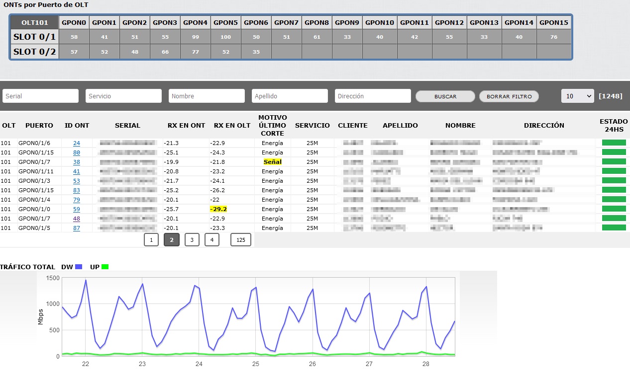 Monitoreo de redes FTTH/GPON y HFC para asegurar el correcto funcionamiento de todos los eslabones del servicio planificando ampliaciones y/o migraciones contando con la información necesaria para la toma de decisiones.